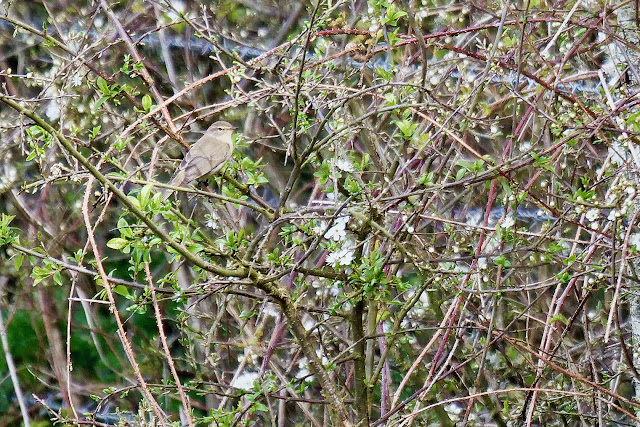 A distant Chiffchaff was flying along the edge of this hedgerow catching insects.